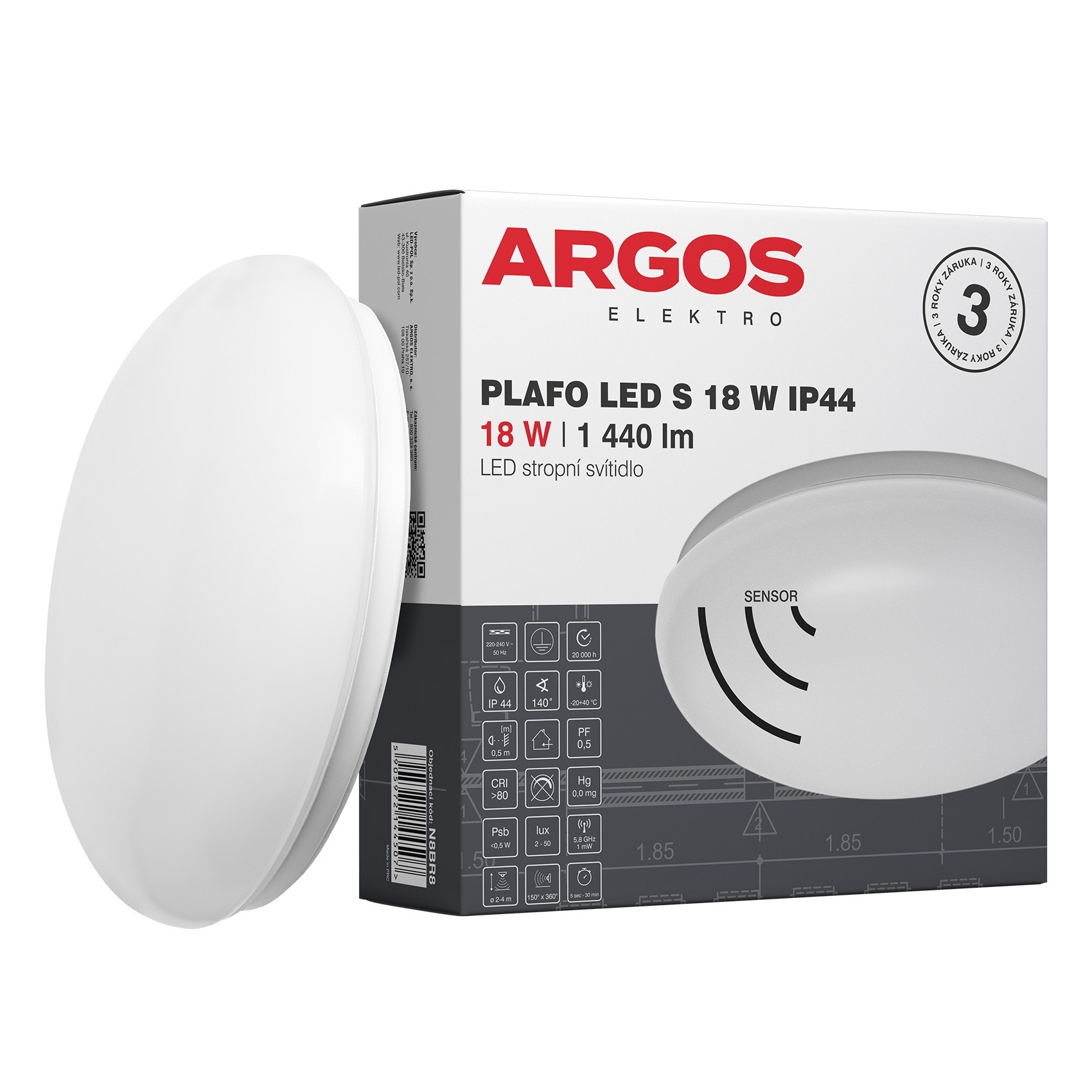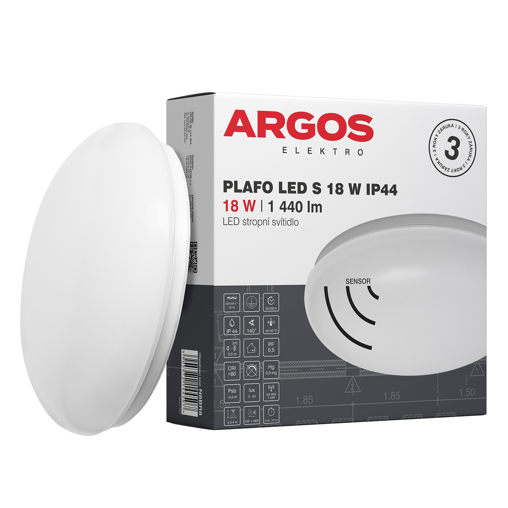 | PLAFO LED S 18W IP44 | N8BR8 | 5905972144507 | 18 | 2200lm | 1440lm Ф360° | 80lm/W | 4000K | 140° | ⌀ 290 x 85 | 410 |