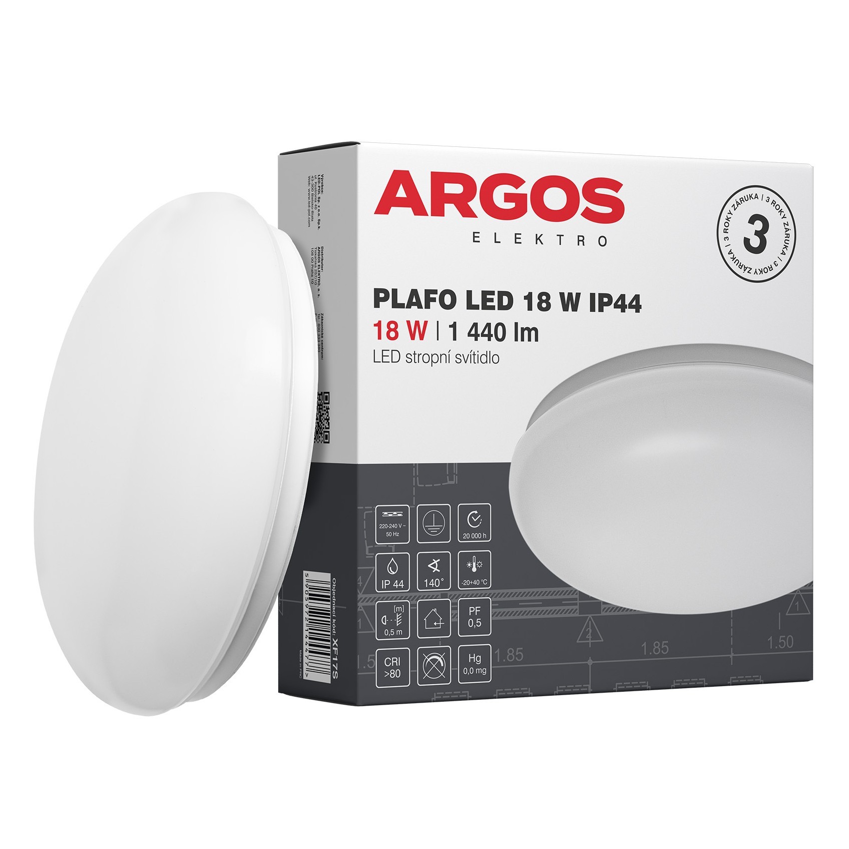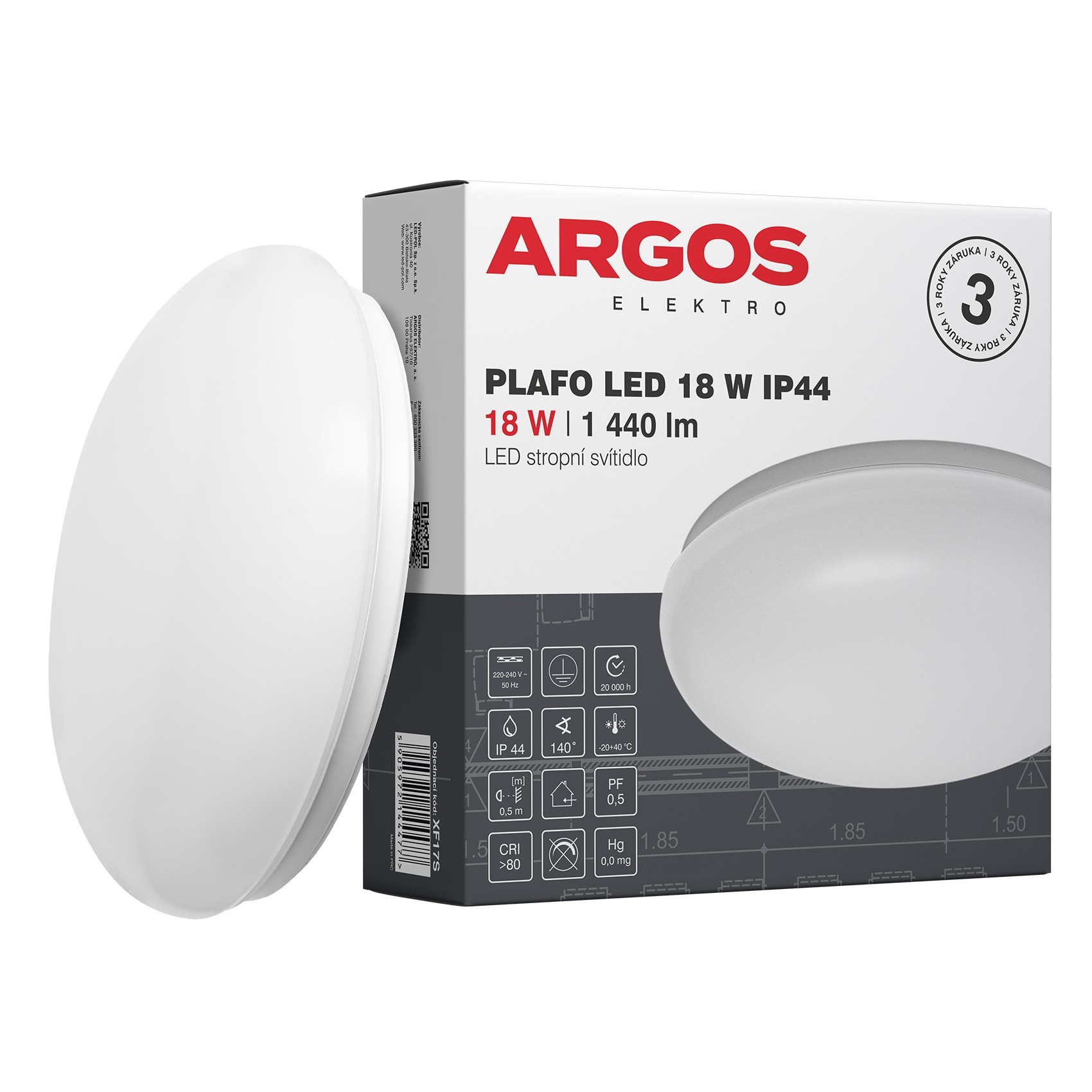 | PLAFO LED 18W IP44 | XF17S | 5905972144477 | 18 | 2200lm | 1440lm Ф360° | 80lm/W | 4000K | 140° | ⌀ 290 x 85 | 390 |